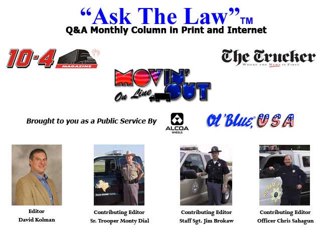 An ongoing educational effort between Ol’ Blue, USA and commercial law enforcement agencies, the “Ask The Law” program’s specific purpose is to have truckers call or e-mail Ol’ Blue, USA and pose questions to law enforcement officials relating to safety and legal issues concerning commercial vehicles. Alcoa Wheel Products and Ol’ Blue, USA presents this program as a public service.