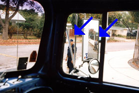 RJ is doing a good job scanning my mirrors. At the same moment that Officer Blue steps off the curb, RJ glances in his right-rear-view mirror to make sure Officer Brown is still sitting on his bicycle by the curb talking to his friend.
